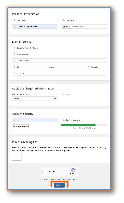 Just visit our website and click on the “Register” button on the top header. There you’ll have to fill up the form. Remember to not leave any blank spaces in the info boxes.
