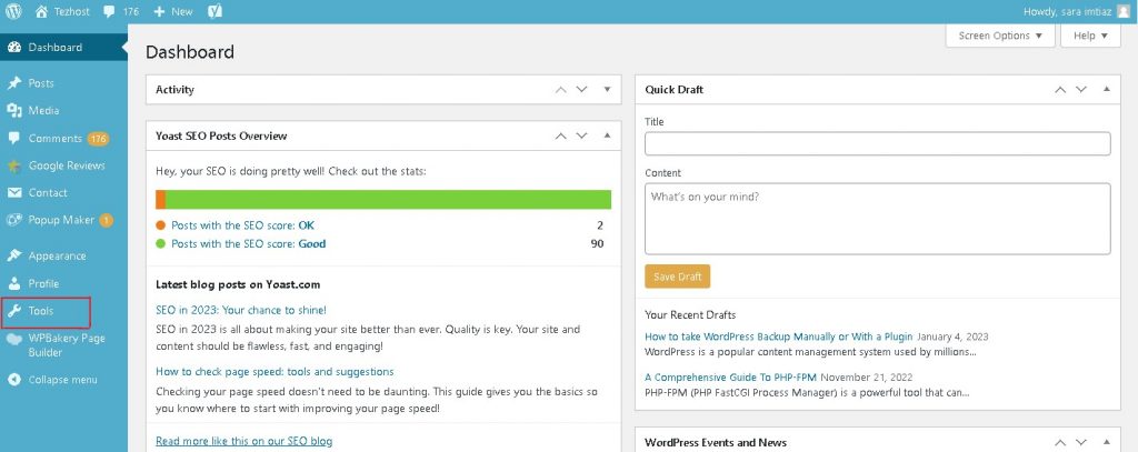 Login to your WordPress dashboard and go to the “Tools” menu.