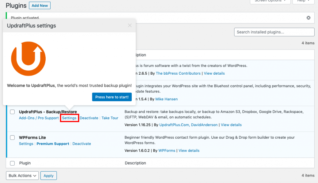 If you don’t want to go through the hassle of manually taking backups of your WordPress site, you can use a plugin to automate the process. There are many WordPress backup plugins available, but we recommend using the UpdraftPlus plugin. Here’s how to use UpdraftPlus to take a backup of your WordPress site: