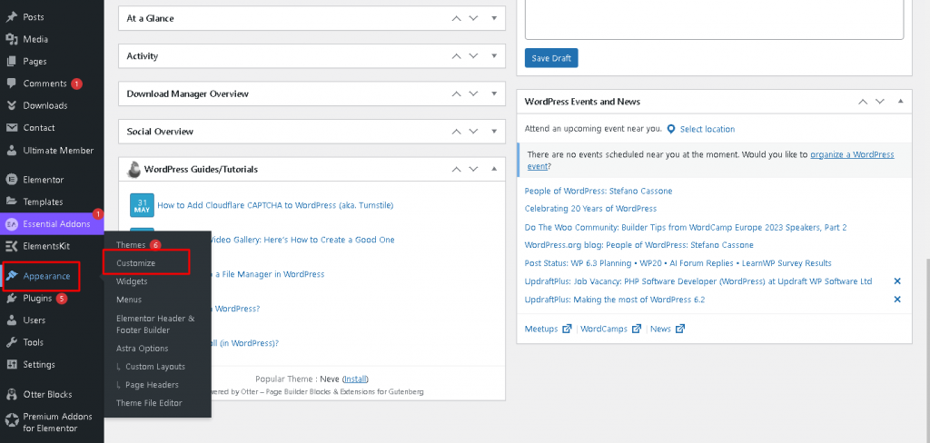Navigate to your WordPress dashboard and click on “Appearance” > “Customize”