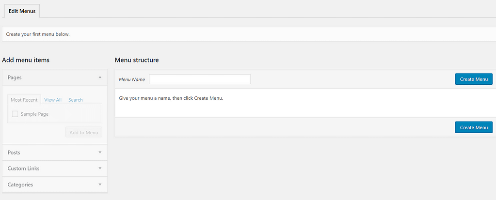 2. Navigate to Appearance > Menus to alter the default menu of your website.