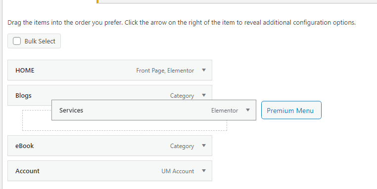 6. If you want to switch the order of the menu items, all you have to do is drag and drop them in the desired positions.