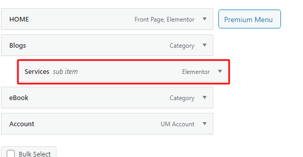 7. Now, to make sub-menus, all you need to do is to drag the category to right and release it. This way you will see the sub-item tag on the required sub menu. You can get this sub-menu back to the earlier position using the same step.
